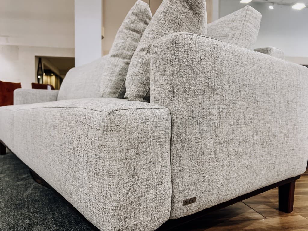 O SOFÁ ALLURE é a peça central que faltava para transformar sua sala em um ambiente de revista. Com um design contemporâneo de linhas retas e uma elegante base em madeira maciça de Eucalipto, ele une a leveza visual com uma estrutura robusta, ideal para quem valoriza decoração de alto padrão.